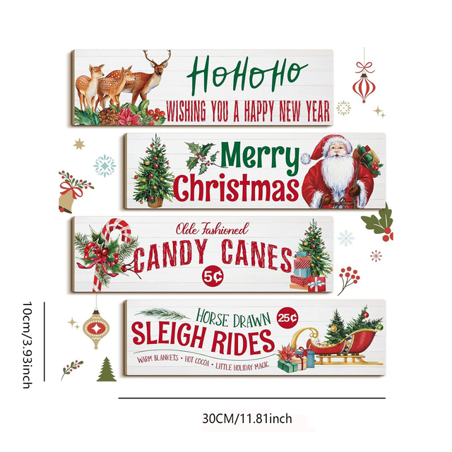 Spiareal 4 parça Vintage noel ahşap asılı SignSign plak süs kapalı açık tatil sınıf ev dekor için